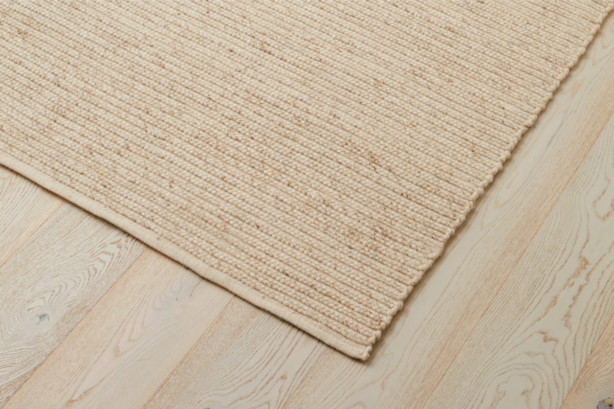 Linear is a handwoven textured floor rug featuring a rib design in 50% wool & 50% cotton. It uses a chunky spun wool yarn, together with warp threads in cotton to tie down the chunky woollen yarn. The Linear is recommended for bedrooms and sitting rooms. Hand woven in Northern India, using traditional techniques. Our suppliers are active members of Care & Fair, investing in education and health care in carpet weaving areas.