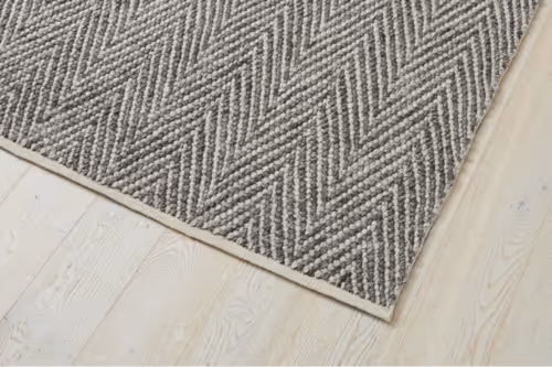 The Scene is a tightly woven traditional flat weave rug. Chevron pattern created with two different thread thicknesses to create the rugs distinctive style.